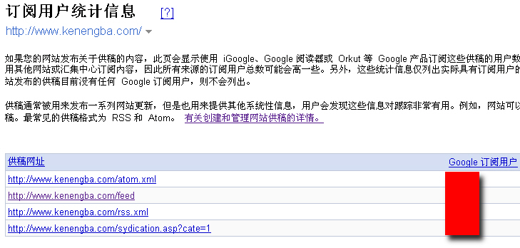 “Googleblot会查看哪些内容”其实就是原先的“链接到你网站的文字”,而“订阅用户统计信息”则是新增的功能。它可以让你查看 iGoogle、Google 阅读器或 Orkut 等 Google 产品订阅这些你的网站的RSS输出的订户数。界面如下: